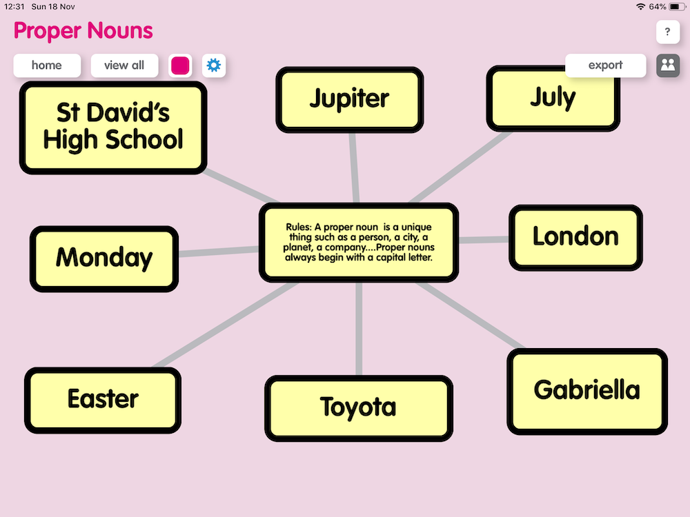 - The popplet you want to see online should be in the device tab, like the Proper Nouns popplet below. Tap once to open it: